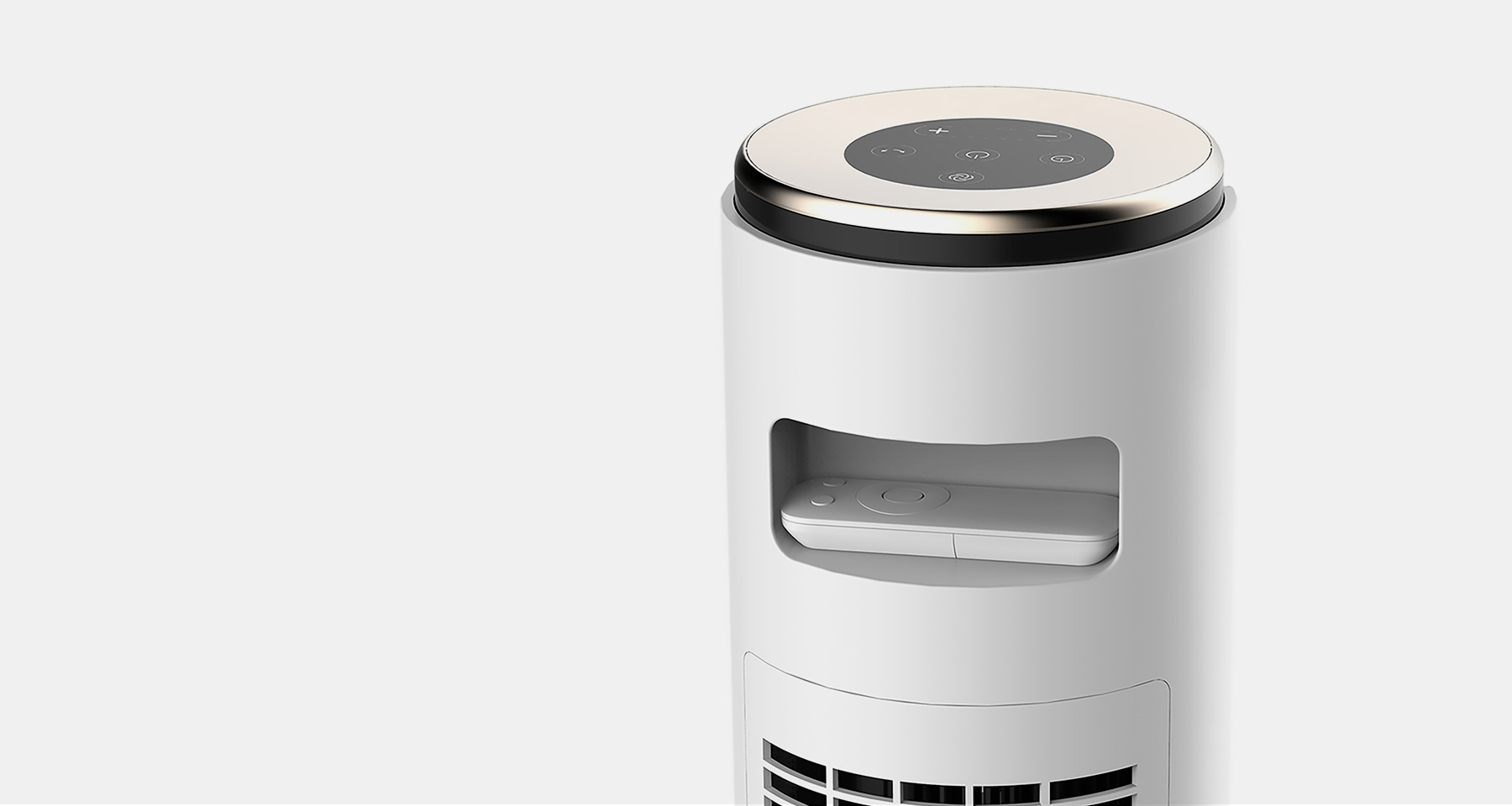 这是一款家居使用的立式无叶塔扇设计。此产品可实现人性化智能远程操控,操控更为简易。该塔扇内设3种风类,摇头内旋式送风,有6档风速可控调节, 12小时定时选择,无电机噪音。尽享清凉舒适,全家清凉齐分享。