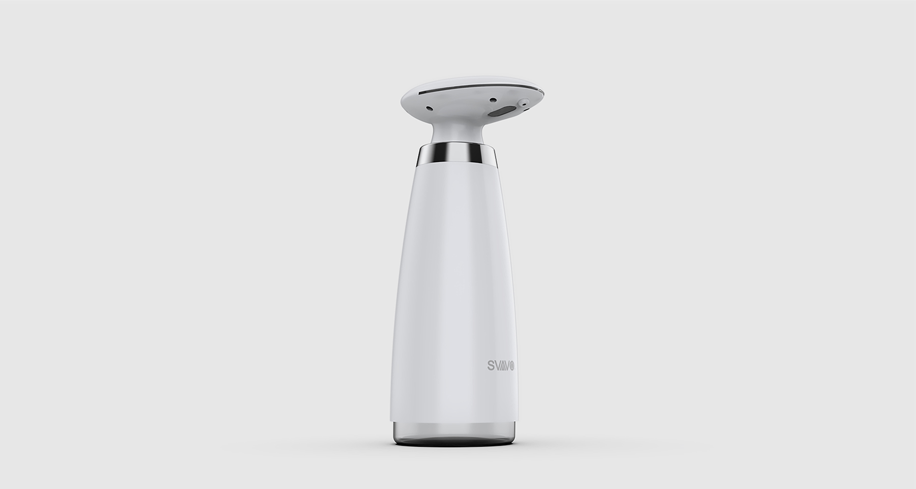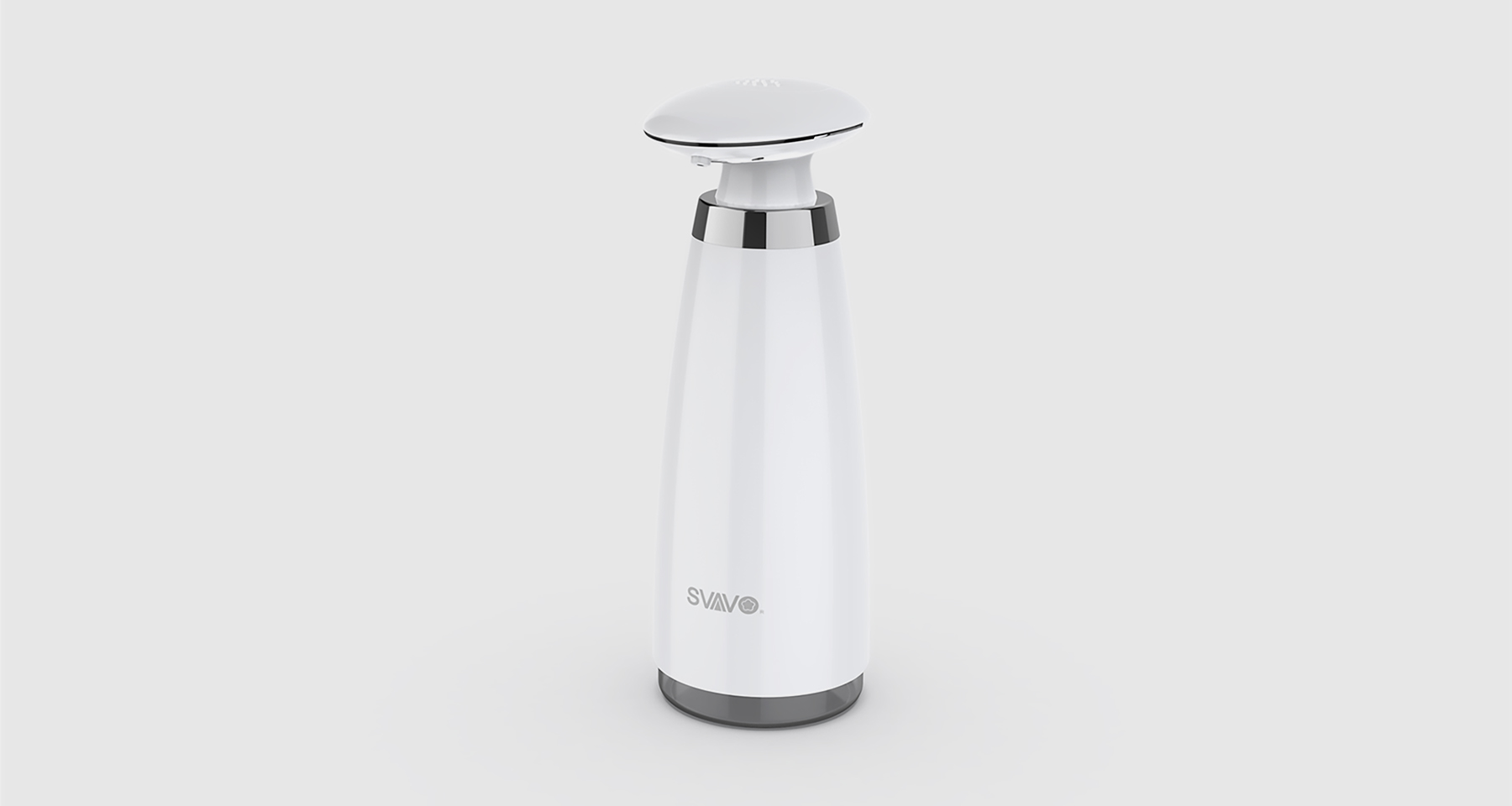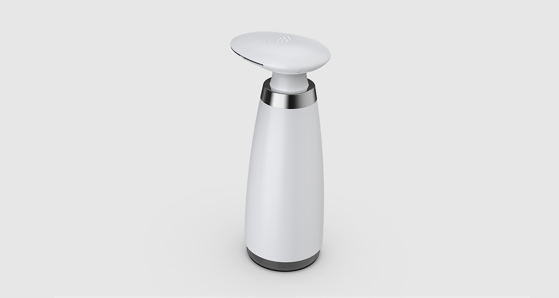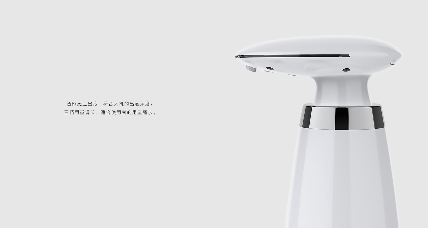 这是一款台置自动感应皂液器,整体小巧,圆润简洁,底部采用可替换式皂液瓶; 智能感应出液,全程免接触,环保卫生;外观与与皂液器呵护手部、干净手部功能完美融合。